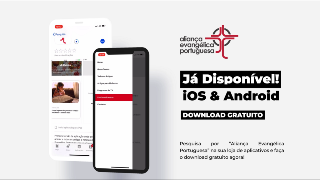 Basta pesquisar por: “Aliança Evangélica Portuguesa” e fazer o download da App de forma gratuita!