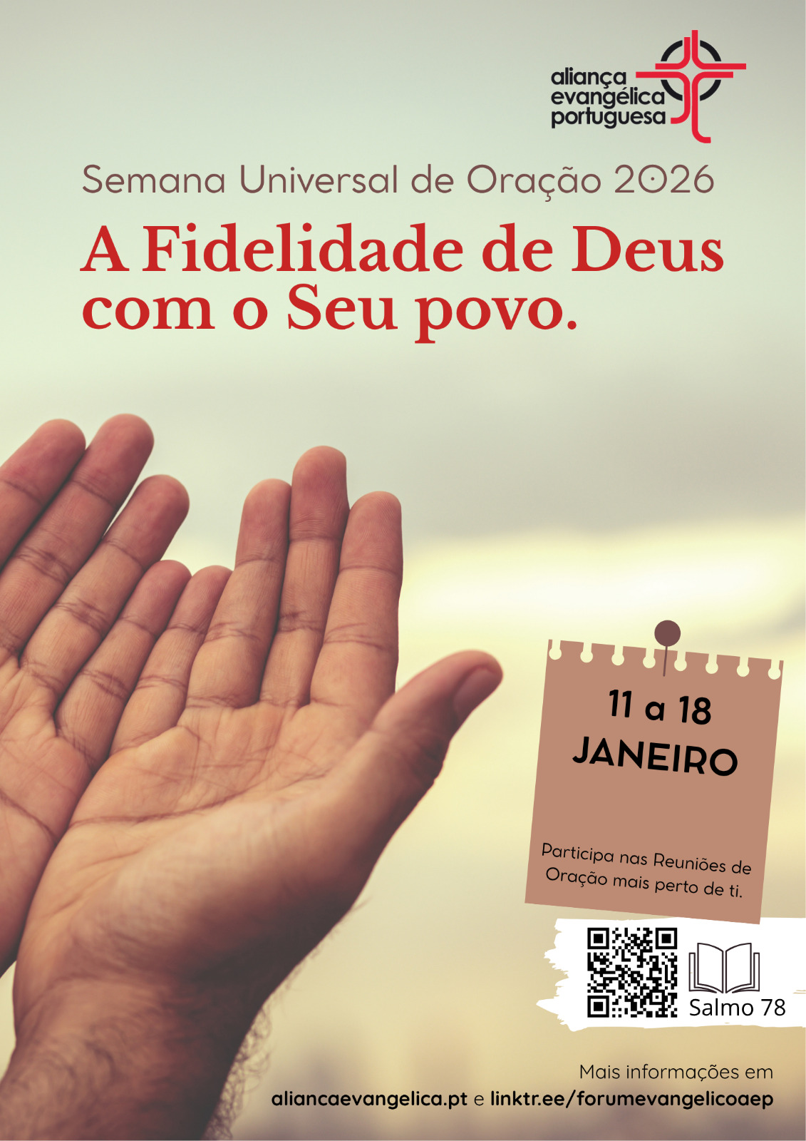 A Aliança Evangélica Portuguesa convida todos os irmãos, igrejas e comunidades a envolverem-se uma vez mais na Semana Universal de Oração, de 11 a 18 de Janeiro, este ano sobre...