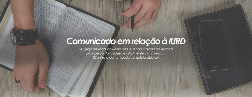 A Igreja Universal do Reino de Deus não é filiada na Aliança Evangélica Portuguesa e dificilmente virá a sê-lo na medida em que a sua doutrina e a sua prática não respeitam os valores e os princípios da Aliança Evangélica.