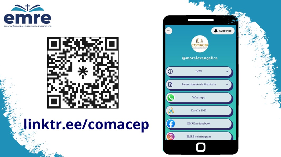 Para mais informação sobre a disciplina de EMRE, visite-nos em: https://linktr.ee/moralevangelica