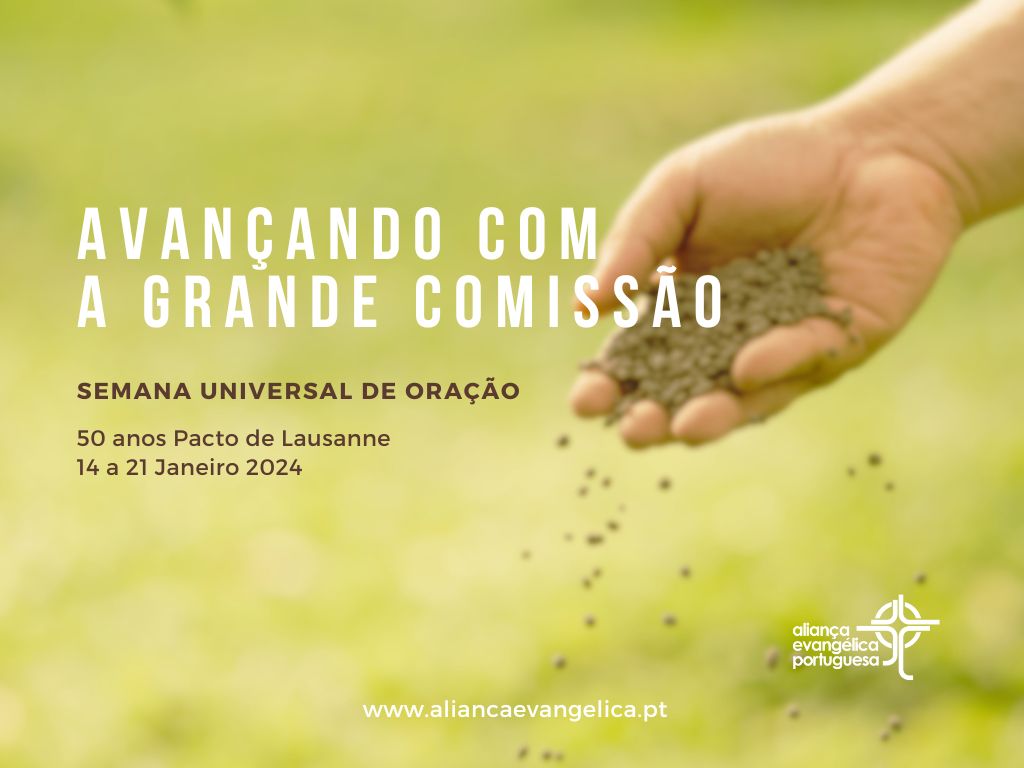 Uma vez mais vamos começar o ano unidos em ORAÇÃO, com.a SEMANA UNIVERSAL DE ORAÇÃO que se realiza de 14 a 21 de Janeiro, desta vez sobre o tema “Avançando com a Grande Comissão”.